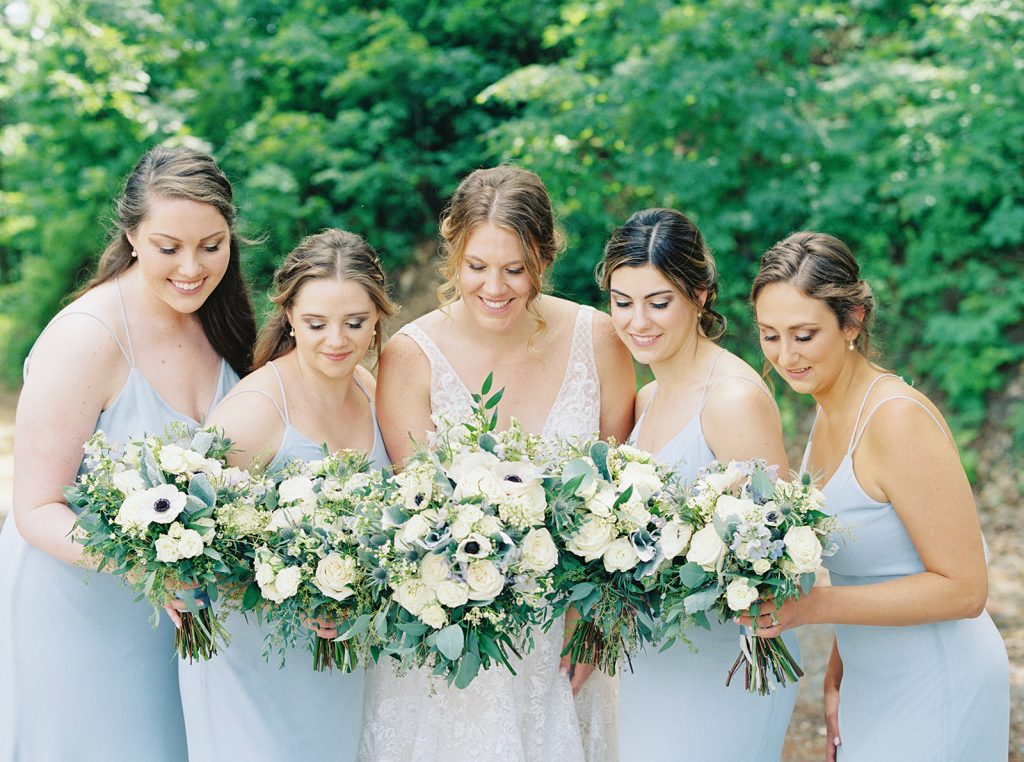 Soft, rosy makeup and half-up hairstyles created a romantic, cohesive feel that photographed beautifully in the Tennessee sunshine.